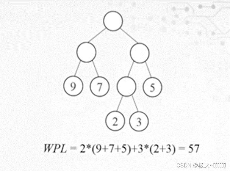2、树的带权路径长度:是指树中所有叶子结点的带权路径长度之和,记作: