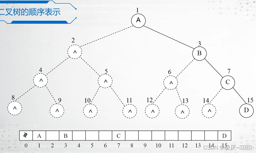 通常通过定义一个一维数组来表示二叉树的顺序存储空间。