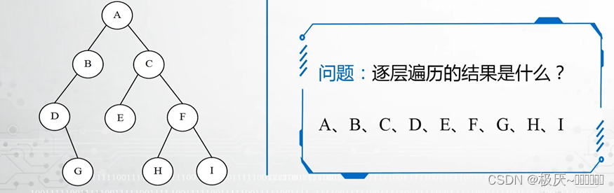 逐层遍历:是指从第1层开始依次对每层中的结点按照从左至右的顺序进行访问。
