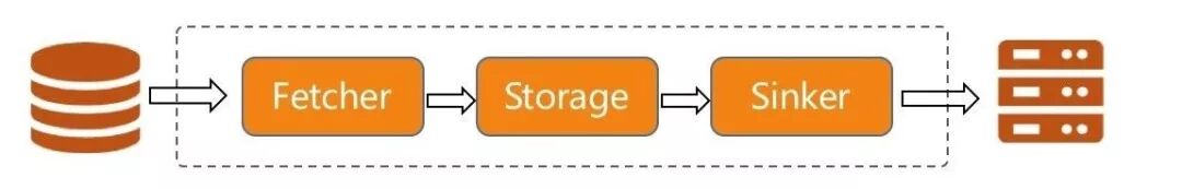 Fetcher负责抽取数据,Sinker负责写入数据,Storage为缓存层。
