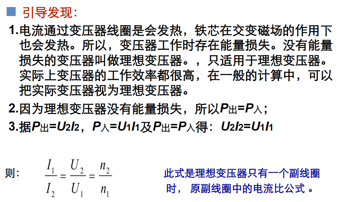 变压器工作时存在能量损失。没有能量损失的变压器叫做理想变压器