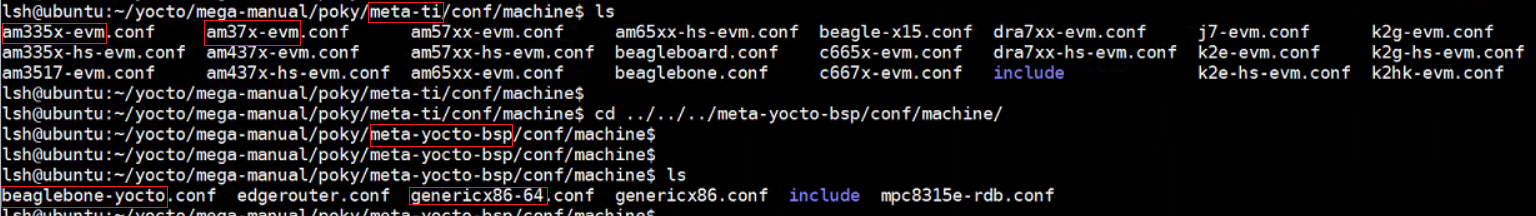 这个图中的,meta-ti层中的 am335x-evm.conf am37x-evm,conf等都是机器配置文件,另外meta-yocto-bsp层中的beaglebone-yocto.conf也是机器配置文件