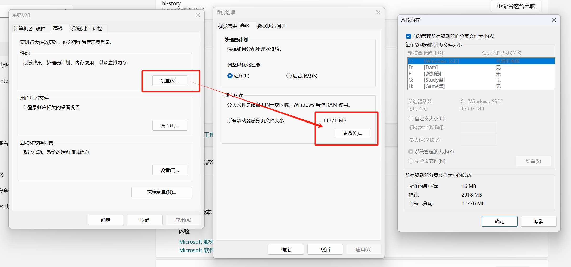 ----在网上查阅一翻发现,Pagefile.sys文件(虚拟内存),移动后可以清出这部分空间给c盘。