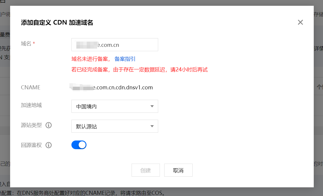 但是注意,要想启用CDN加速域名,需要自己租一个域名去,贵倒是不怎么贵,就是感觉又被中途薅了羊毛