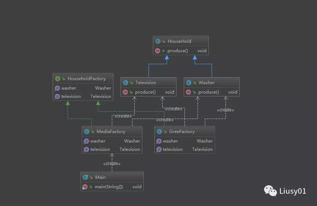 为啥一起记它俩这个模式呢,因为它俩很容易被区分,它俩最大的区别在于是产品等级和产品族的问题。例如法拉利的车和保时捷的车属于同一个产品等级,而冰箱、电视等家用产品是属于同一个产品族,小米的生态圈就可以看做是一个产品族。