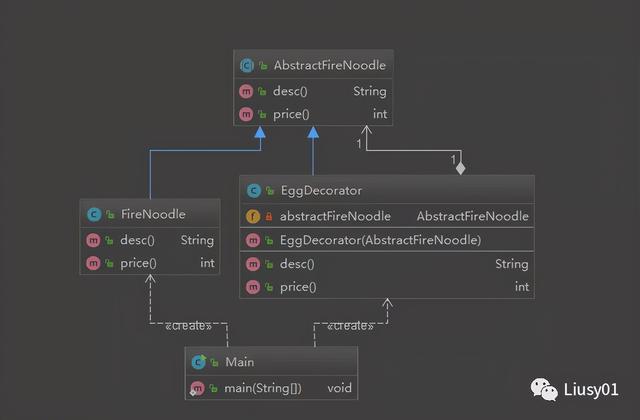 此时炒粉就是一个架构,鸡蛋、香肠、小米辣等只是在炒粉的基础上进行修饰。那么炒粉就是被修饰者,鸡蛋等就是修饰者。