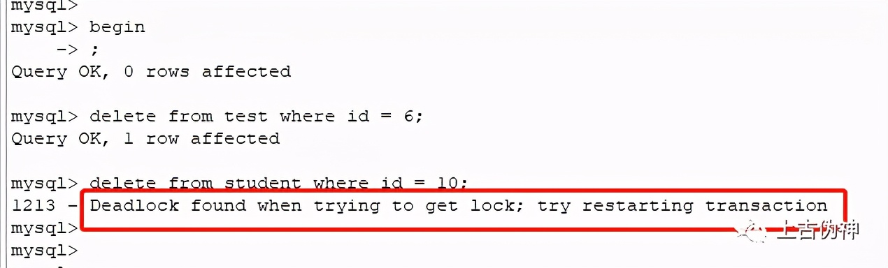 此时就会报死锁错误: