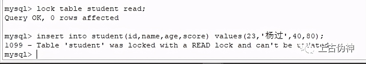 1、给student表添加读锁,看当前用户和其他用户是否能插入数据: