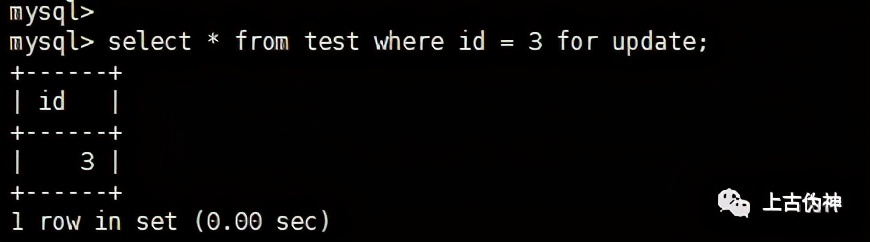 select * from test where id = 3 for update;