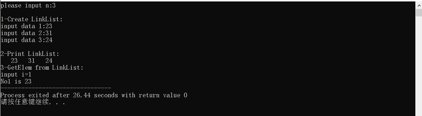 /*printf("please input n:"); /*输入单链表的元素个数*/