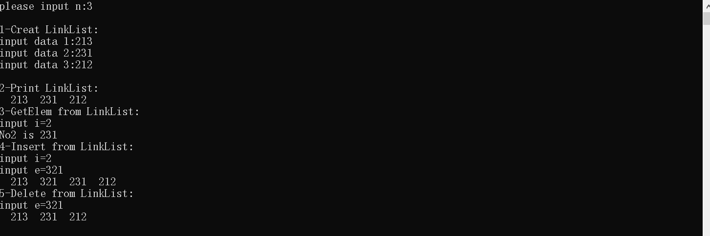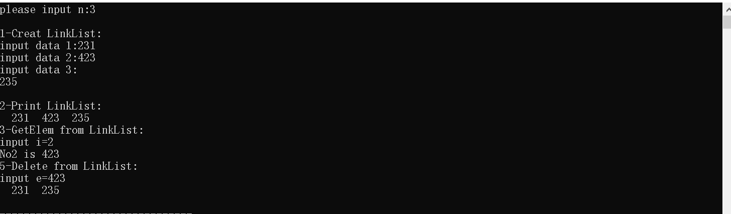 //DeleteList(L,e);PrintList(L);/*输出调用后的结果*/