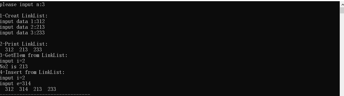 printf("\n4-Insert from LinkList:\n");/*调用插入函数*/