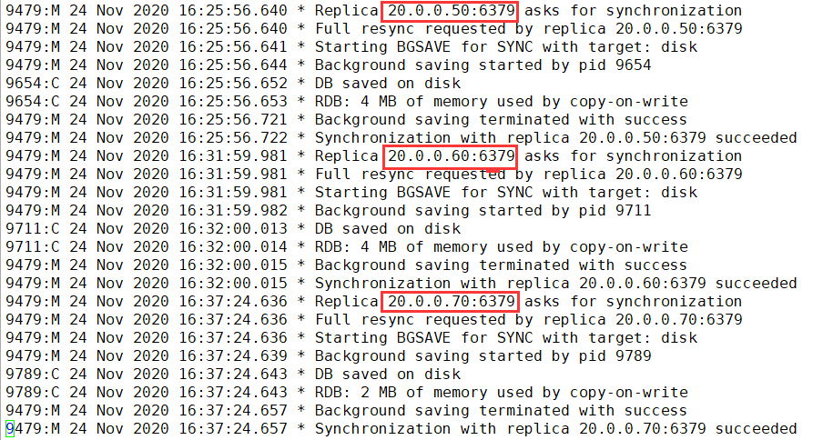 验证主从效果(master上看日志)