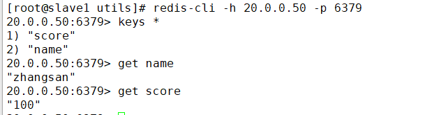[root@master utils]# redis-cli -h 20.0.0.40 -p 6379