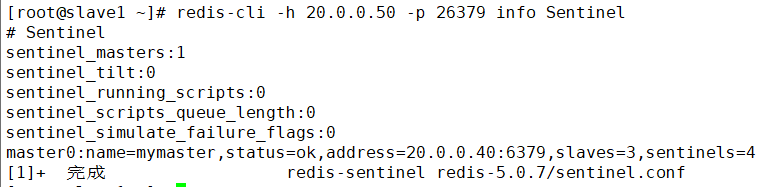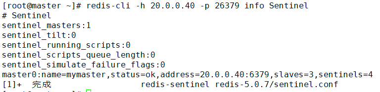 [root@master ~]# redis-cli -h 20.0.0.40 -p 26379 info Sentinel