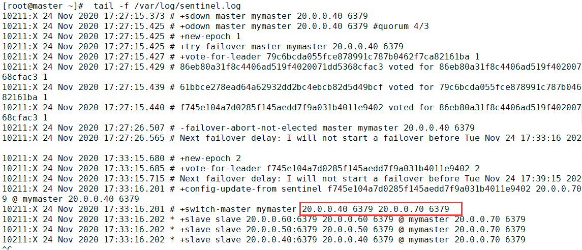 [root@master ~]# tail -f /var/log/sentinel.log