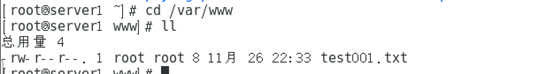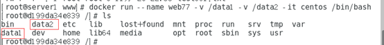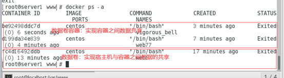可以看到在data1中创建的文件显示在/var/www中,数据卷实现宿主机与容器中目录数据的共享