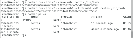 创建并运行容器取名web2,端口号-P 随机并与web1实现互联(--link)
