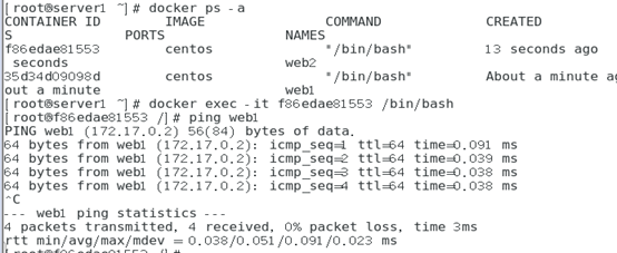 进入web2容器 ping web1