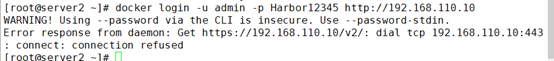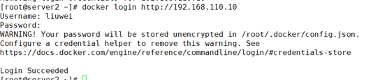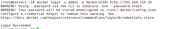 [root@server2 ~]# docker login -u admin -p Harbor12345 http://192.168.110.10