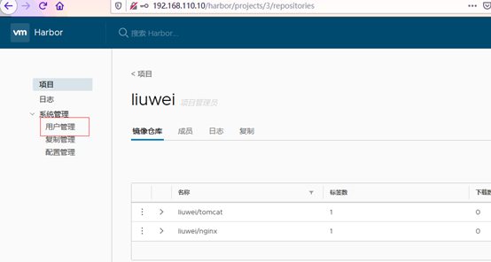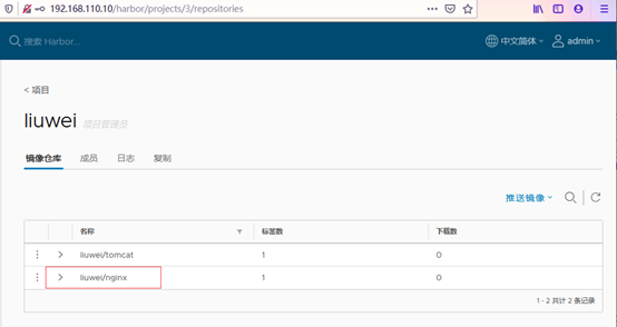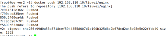 [root@server2 ~]# docker push 192.168.110.10/liuwei/nginx