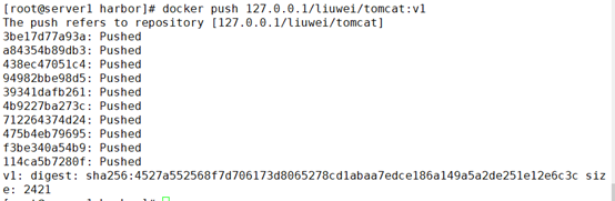 [root@server1 harbor]# docker push 127.0.0.1/liuwei/tomcat:v1