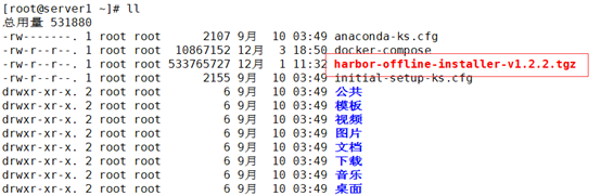 [root@server1 ~]# tar zxvf harbor-offline-installer-v1.2.2.tgz -C /usr/local