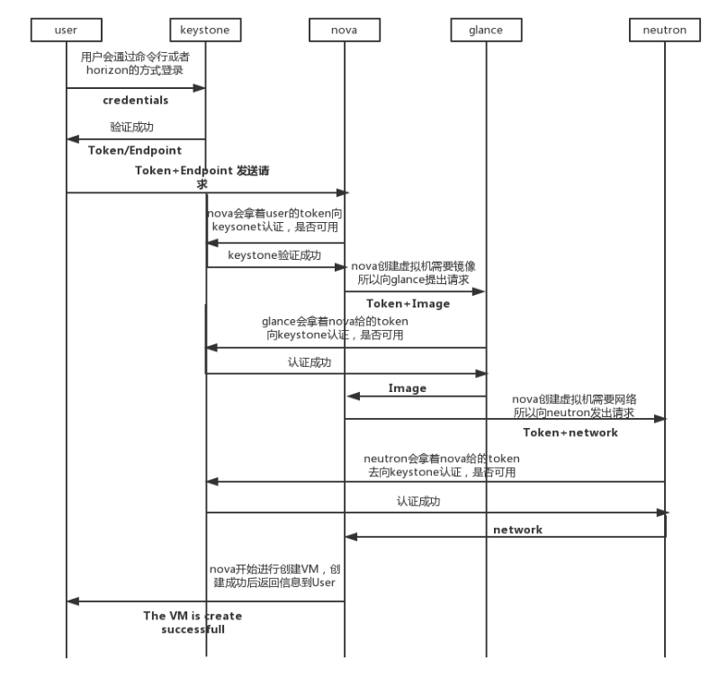 nova服务需要和好几种服务进行交互,比如认证的keystone,镜像的Glance,Web接口的Horizon,及Glance.
