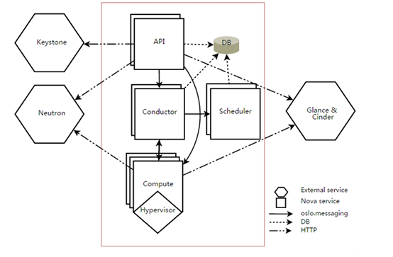 所有对Nova的请求都首先由Nova-api处理。api提供rest标准调用服务,便于与第三方系统集成。