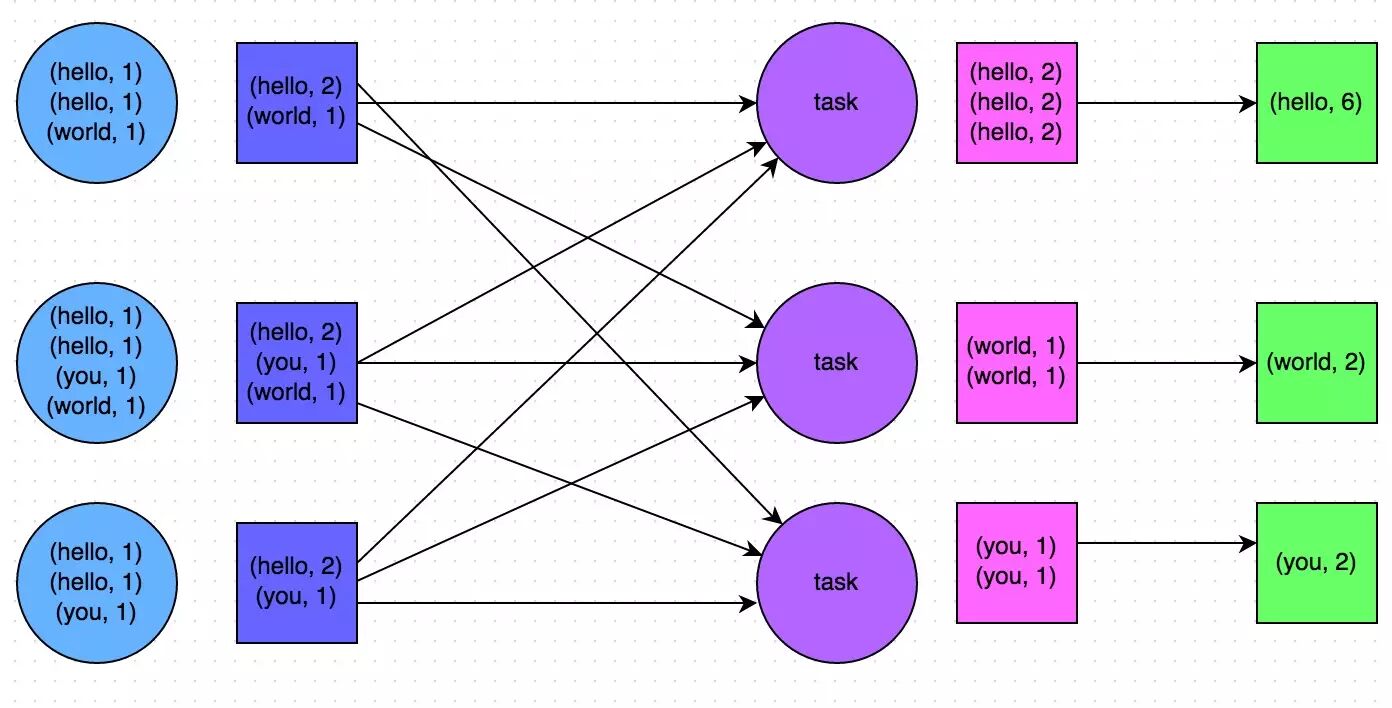 所谓的map-side预聚合,说的是在每个节点本地对相同的key进行一次聚合操作,类似于MapReduce中的本地combiner。map-side预聚合之后,每个节点本地就只会有一条相同的key,因为多条相同的key都被聚合起来了。其他节点在拉取所有节点上的相同key时,就会大大减少需要拉取的数据数量,从而也就减少了磁盘IO以及网络传输开销。通常来说,在可能的情况下,建议使用reduceByKey或者aggregateByKey算子来替代掉groupByKey算子。因为reduceByKey和aggregateByKey算子都会使用用户自定义的函数对每个节点本地的相同key进行预聚合。而groupByKey算子是不会进行预聚合的,全量的数据会在集群的各个节点之间分发和传输,性能相对来说比较差。