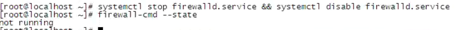 systemctl disable firewalld.service #禁止firewall开机启动firewall-cmd --state #查看默认防火墙状态,关闭后显示not running,开启后显示running