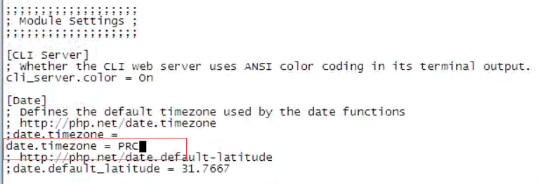 date.timezone = PRC # 配置时区