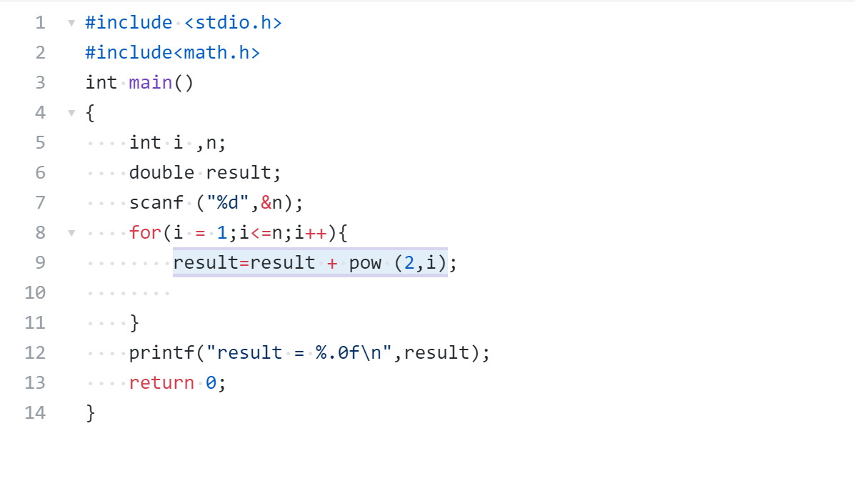 题目内容描述:计算2的递增幂之和,可以调用pow函数求幂。