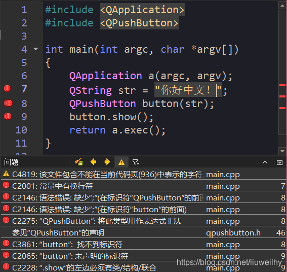 3. 第3个问题:在字符串常量上加QStringLiteral宏或QString::fromLocal8Bit函数,如: