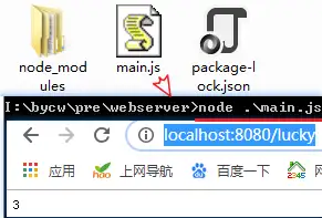 app.listen(8080); // 站点端口; 如下图,在webserver目录下打开命令窗口,输入node .\main.js启动抽奖游戏的后台服务。然后在浏览器地址栏输入localhost:8080/lucky,效果如下: