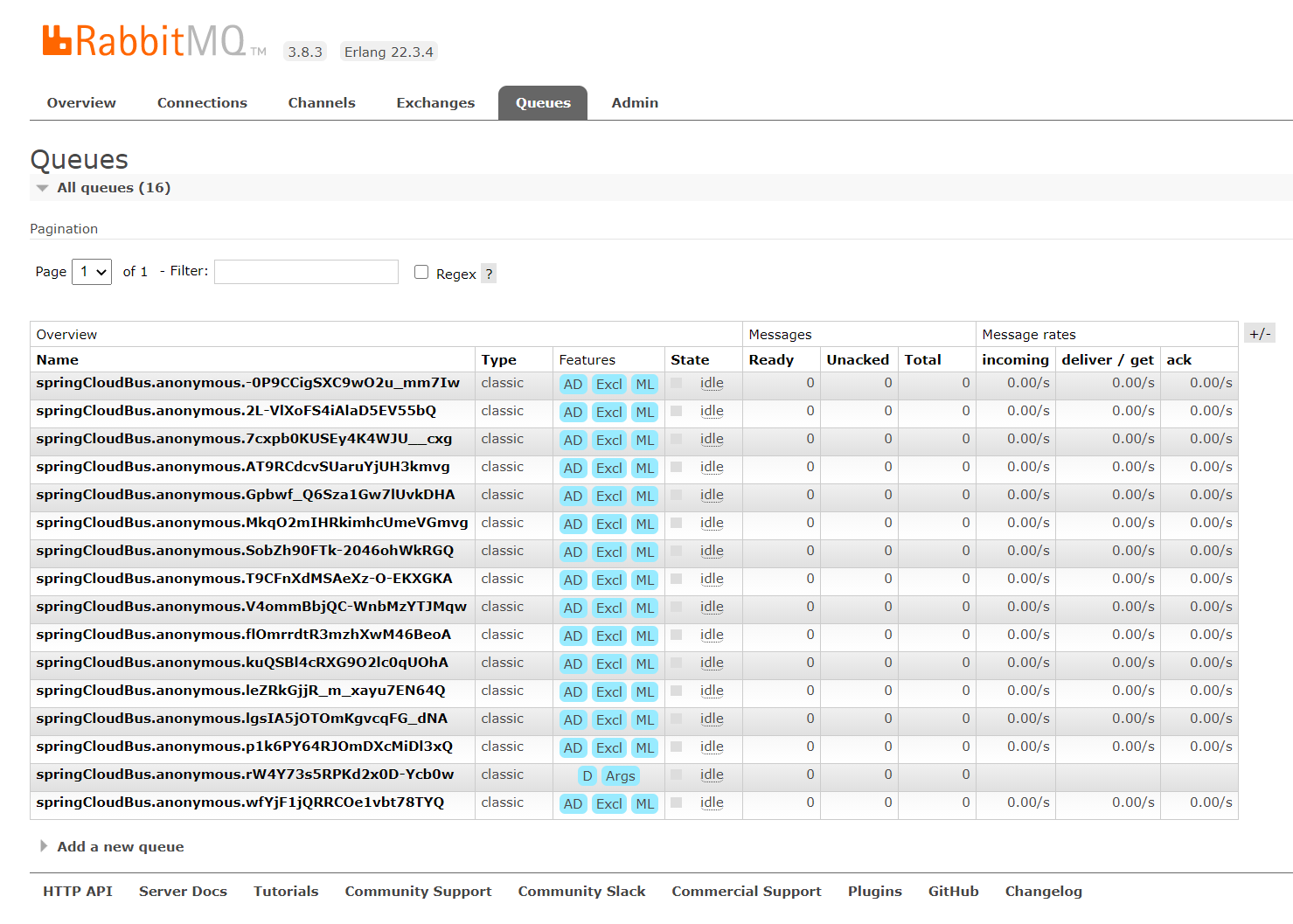 在每一个客户端都配置了消息总线的地址,并且引入了Spring-Cloud-Config-Client的依赖之后,每个客户端都会与消息总线建立起如下连接: