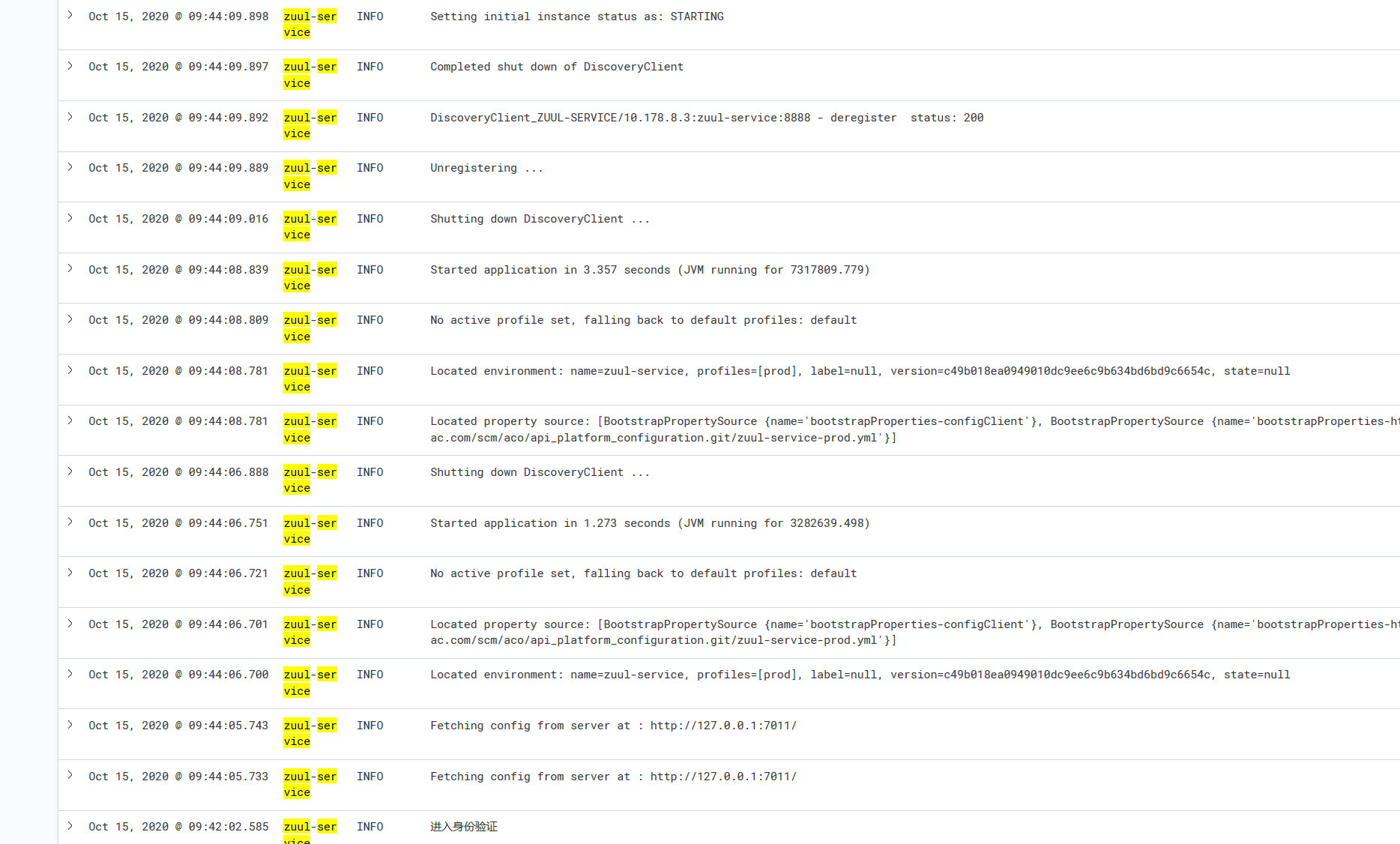 在9点44分我们修改了zuul-service的配置并执行了端点调用:
