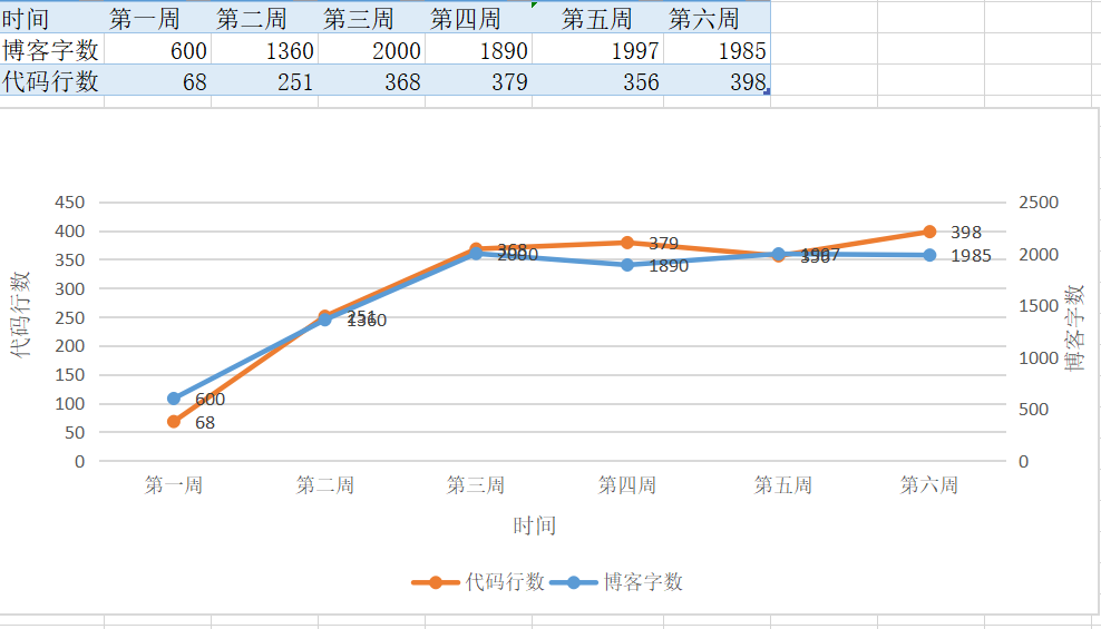 3.2 累积代码行和博客字数(5分)