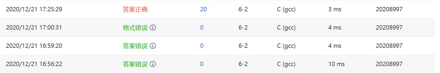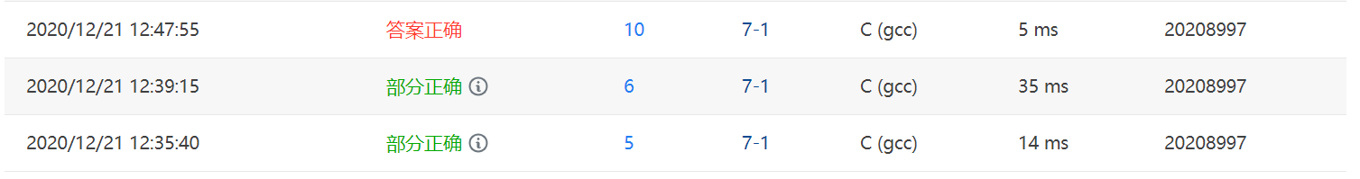 部分正确:本题中代码过多,花括号较多,导致括号位置错误,从而导致部分答案错误。