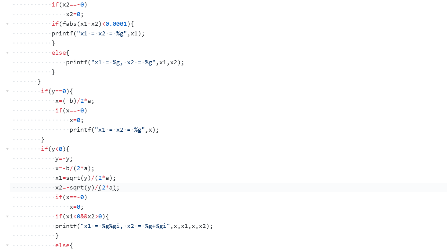 数据处理:运用了if语句和if-else语句的循环嵌套,以及数学函数,如:sqrt(计算x的平方根),fabs(求x的绝对值),表达式为:
