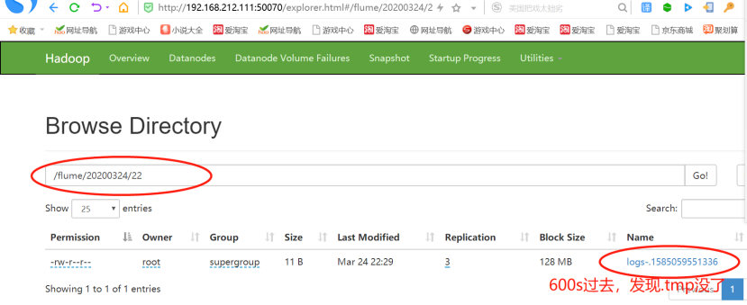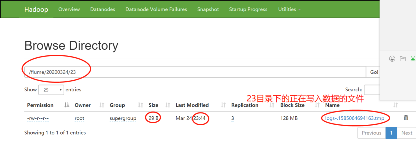 接下来查看Web页面,bigdata111的50070端口,监控plus文件,可以echo往里追加一些内容,查看变化。