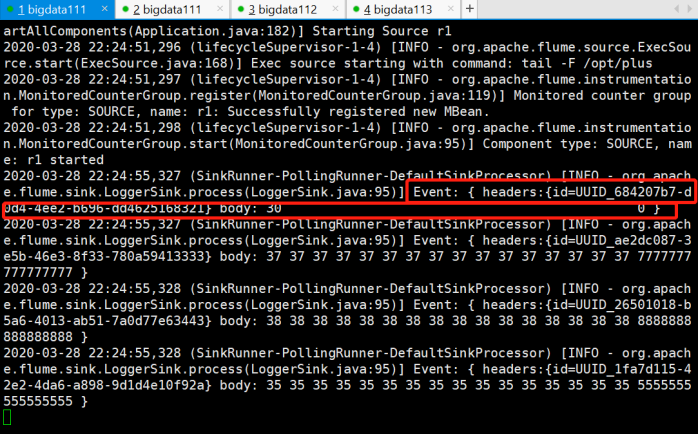 [root@bigdata111 myconf]# flume-ng agent -c ../conf/ -n a1 -f flume-uuid.conf -Dflume.root.logger=INFO,console