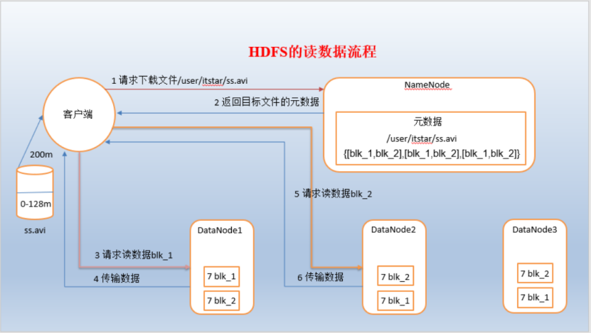 - 如果第一块的数据读完了,就会关闭指向第一块的datanode连接,接着读取下一块。这些操作对客户端来说是透明的,客户端的角度看来只是读一个持续不断的流。