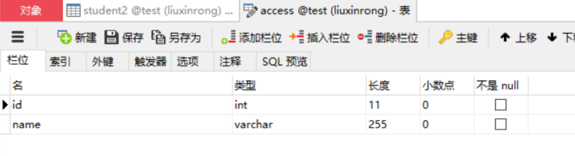 先在关系型数据库MySQL中创建一个表access