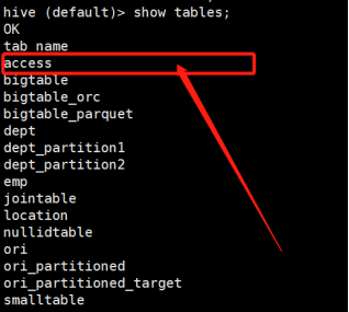 这样就能看到Hive数据库中含有access表格了:
