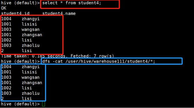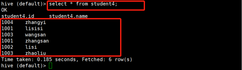 非关系型数据库Hive中的表student4内容: