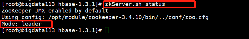 连接上Zookeeper集群 <property> <name>hbase.zookeeper.quorum</name> <value>bigdata111:2181,bigdata112:2181,bigdata113:2181</value> </property>