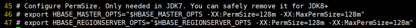 尖叫提示:如果使用的是JDK8以上版本,注释掉hbase-env.sh的45-47行,不然会报警告