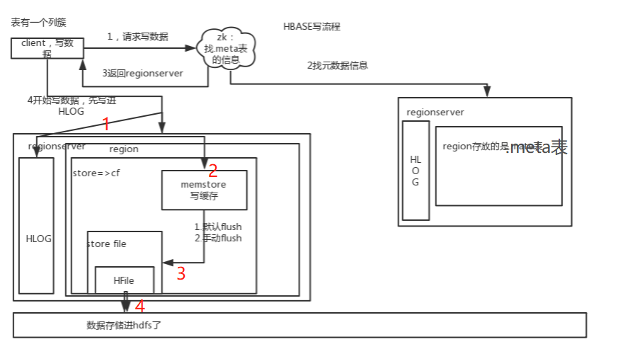 4) Client先把数据写入到HLog,以防止数据丢失。