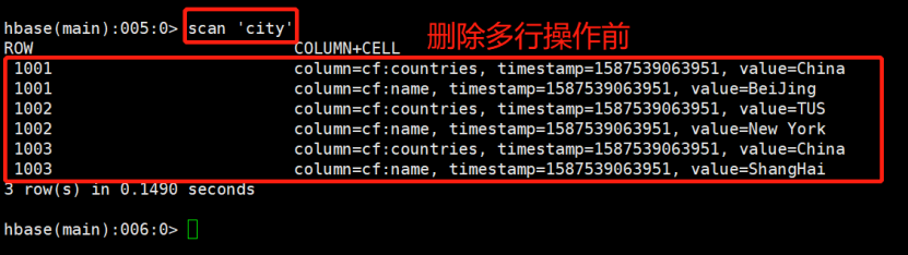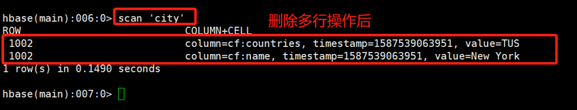 1 deleteMultiRow("city","1001","1003");